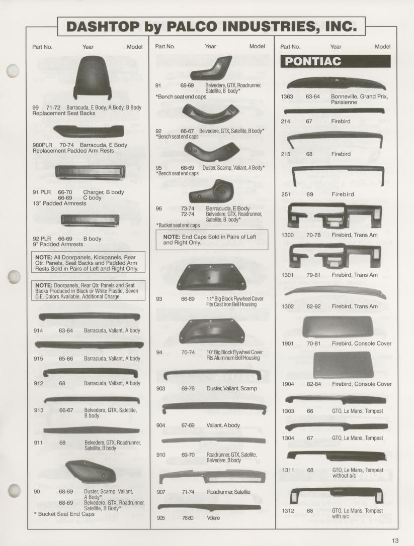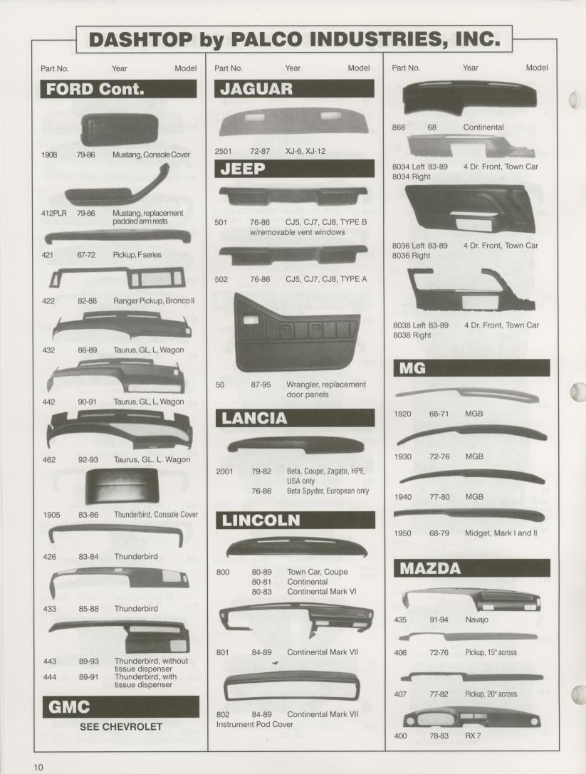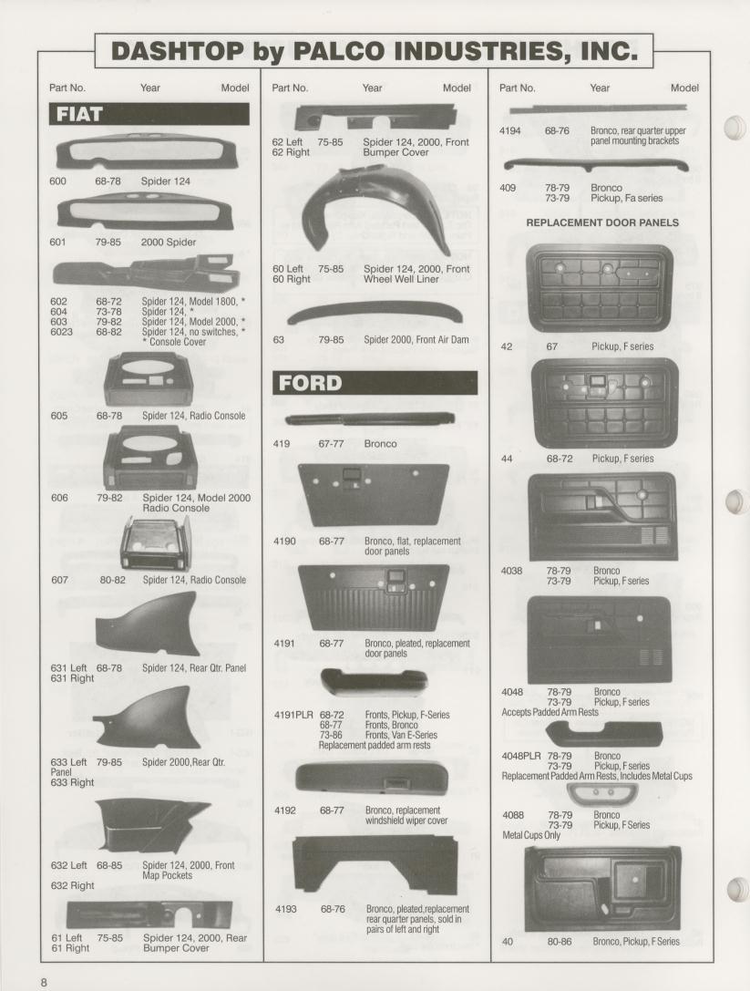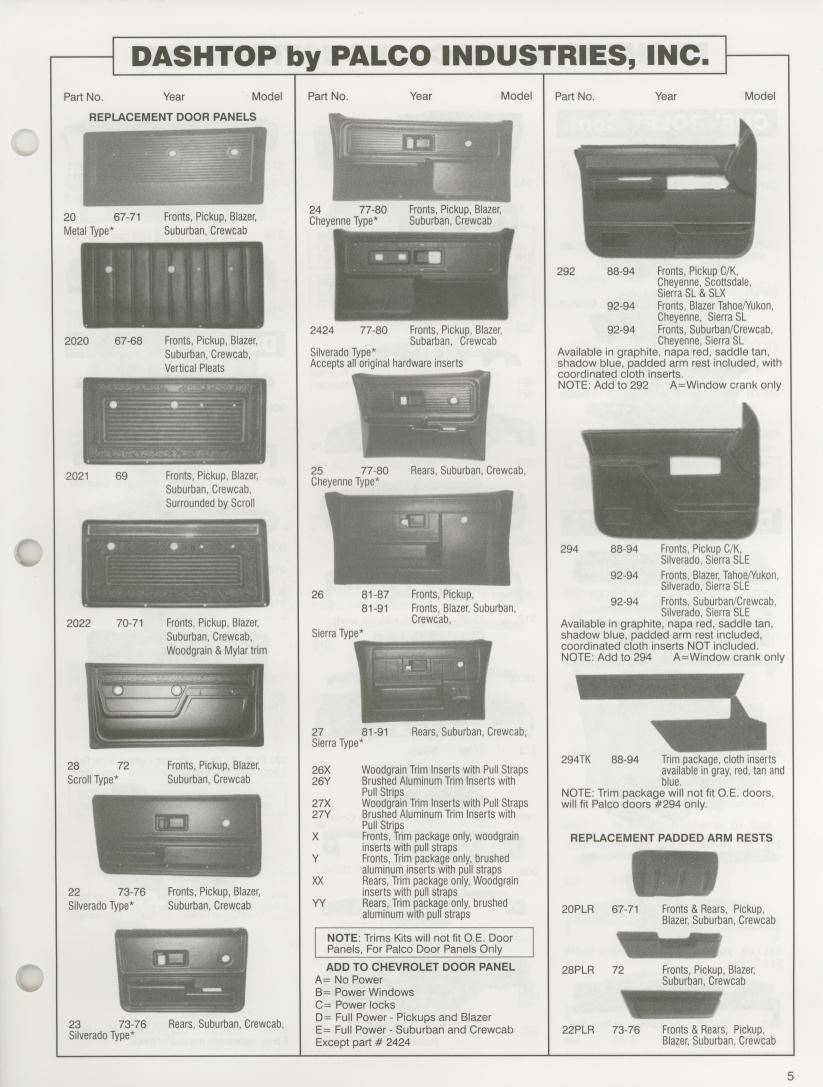 DASHTOP by PALCO Industries, Inc., develops and manufactures a large selection of molded plastic front dashboard covers, replacement arm rests, and replacement door panels. Please browse the catalog below for available products: